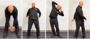 The stretch of the day is the active trunk stretch. This is a great way to quickly loosen up the muscles in the lower back. What makes this stretch special is that it works in all three planes of motion.